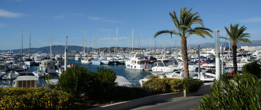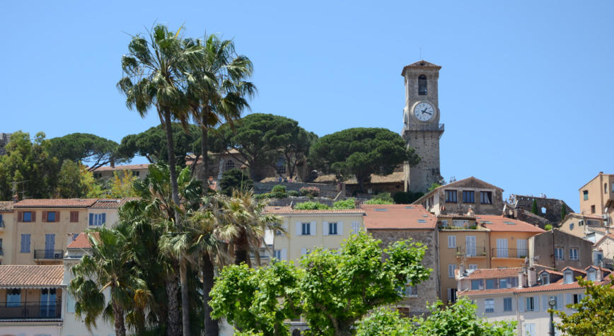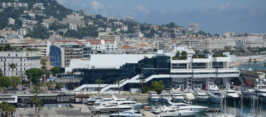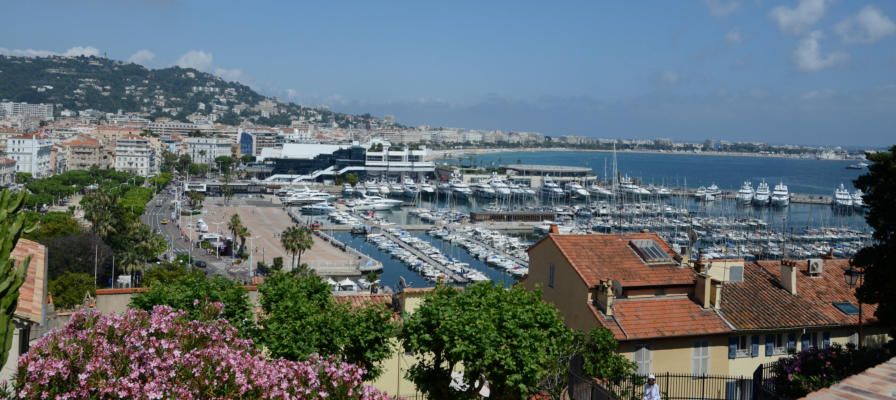 View from the top of Le Suquet down to the harbour and to the „Palais des Festivals“